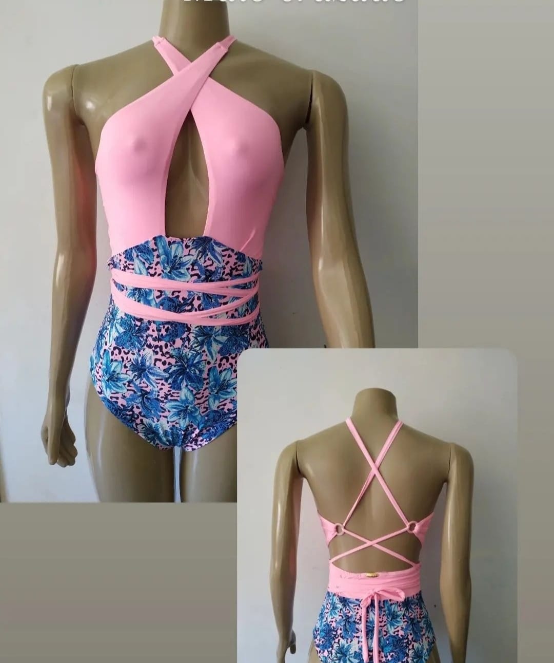 Maiô decote cruzado na frente.